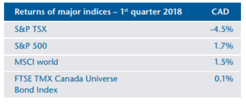 In the first quarter of 2018, investors had sharp reactions to the political, monetary and economic headlines. These included election meddling investigations, White House turnover, global interest rate levels, commodity price movements and oil inventories to name a few. Add to the mix a series of high-profile elections around the world and you have a cocktail for significant market volatility. We take comfort in the fact that with a disciplined approach to investing, volatility often rhymes with opportunity.