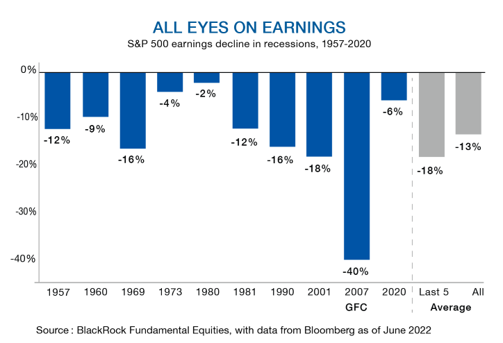However, we are starting to see some light at the end of the tunnel. The things that were most concerning for markets at the start of the year are starting to show some change and potentially normalize. Recession fears are starting to be priced in the markets. This is most evident in the commodity space with lumber down 42% while copper, nickel and zinc are down between 20% & 25% from their peaks. With the magnitude of the expected Federal reserve tightening, as evidence by the bond market’s pricing in a Fed Fund at 3.6%, the risk of a recession is quite high. Goldman Sachs puts a risk of a recession at over 40%. The markets are now grappling with the timing of the recession and its severity, which will obviously impact corporate earnings.