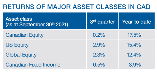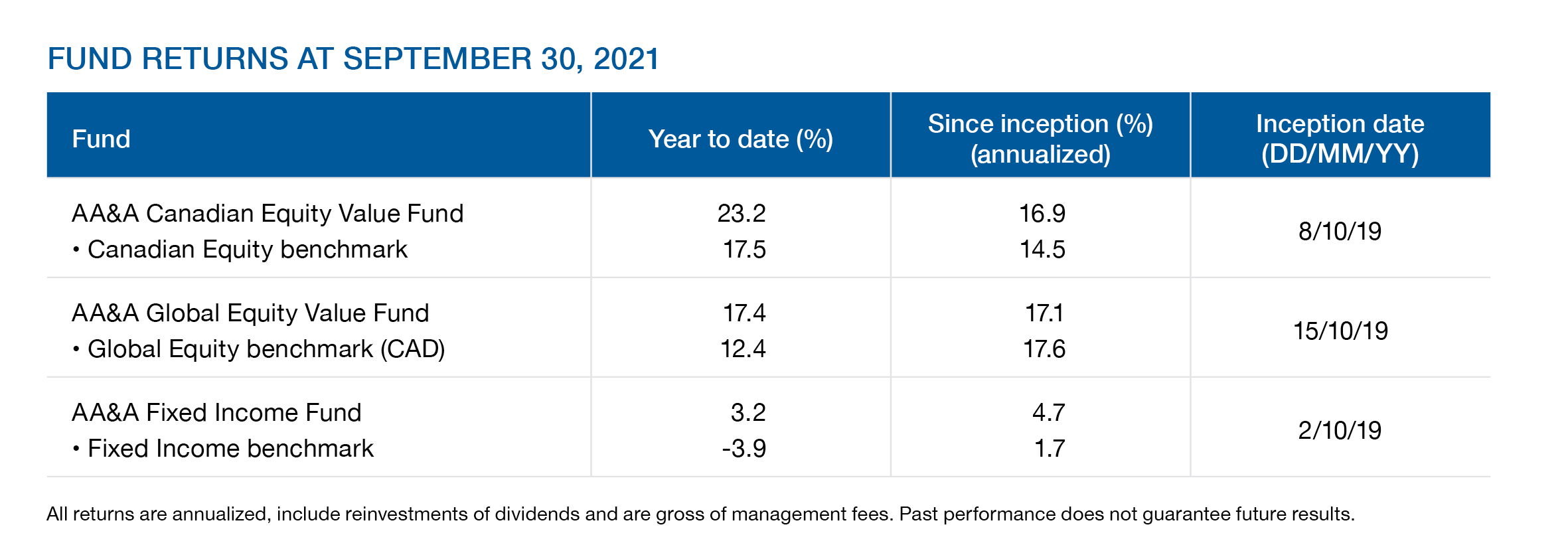 In Q3, we saw a shift in the narrative as investors' expectations, driven by strong economic data and corporate profitability, were counter-balanced by high inflation resulting from supply chain disruptions, peak commodity prices and increased COVID case count.