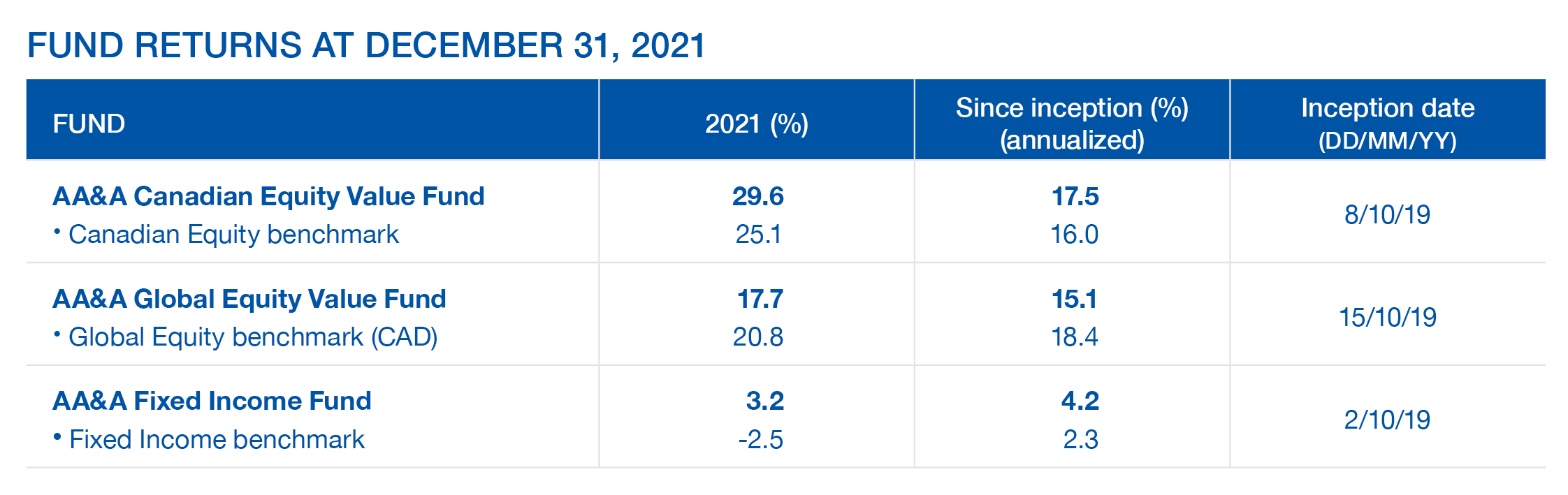 Our funds had strong performance in 2021 and have done well since their inception: