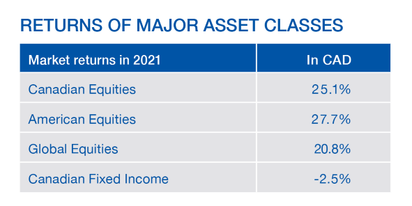 Despite this backdrop, equities had a strong year as Canadian, American, and Global stocks all moved significantly higher on the back of COVID re-opening trade, monetary liquidity and increasing corporate earnings. Businesses have shown great resiliency and corporate earnings have now surpassed their pre-pandemic levels, fueled notably by vigorous fiscal and monetary measures.
