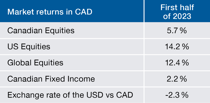 From the second quarter, the trend was completely reversed. In addition to the decline in demand and supply of credit, central banks reassured markets that inflation would be temporary. As a result, long-term interest rates have fallen, which has encouraged a rebound in technology stocks, particularly those related to AI. Foreign markets which are more heavily exposed to technology have outperformed the Canadian market so far in 2023 and the US dollar has edged lower relative to the loonie.