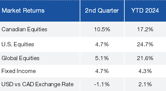 Global equities experienced gains in the third quarter of 2024 despite some volatility, rising 5.1% in Canadian dollars. The Canadian equity market emerged as a top performer this quarter, rising over 10%.
