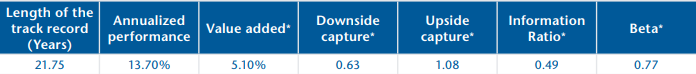 Private clients and foundations usually have clearly defined objectives and a coherent investment policy to achieve these objectives. However during periods of market declines, investors are often tempted to alter their asset allocation which could jeopardize the achievement of their long-term goals. Lower downside capture thus mitigates the risk of adverse behavioural errors during periods of market declines.