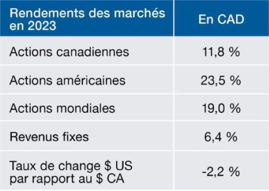 Le fort rebond du dernier trimestre de l’année aura permis à 2023 d’être une année de forts rendements dans l’ensemble pour les marchés.