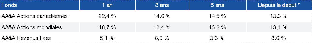 RENDEMENT DES PRINCIPALES CLASSES D'ACTIFS ($ CA)