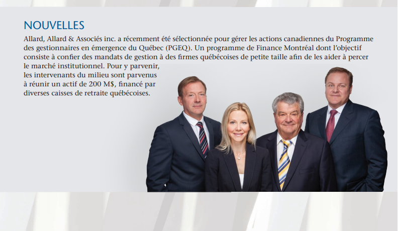 Ainsi, nous voyons le recul des derniers mois comme une opportunité d’acquérir des entreprises de grande qualité à un prix raisonnable. Plusieurs facteurs nous portent à croire que les rendements boursiers seront vigoureux pour les trimestres à venir. Notamment la croissance des bénéfices qui demeure vigoureuse (à l’exception du secteur de l’énergie) et les évaluations des entreprises qui, suite au recul, sont à des multiples très attrayants.