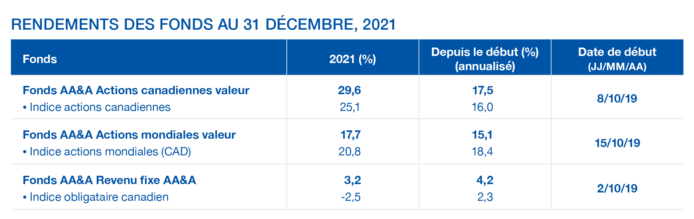 Nos fonds ont enregistré de solides performances en 2021 et depuis leur création :